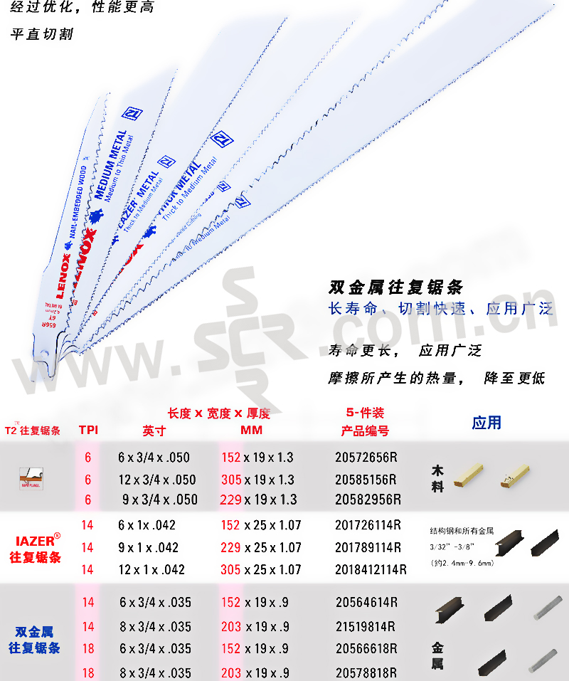 LENOX/雷诺克斯 进口双金属往复锯片 818R金属切割 8" 200×19mm 1条
