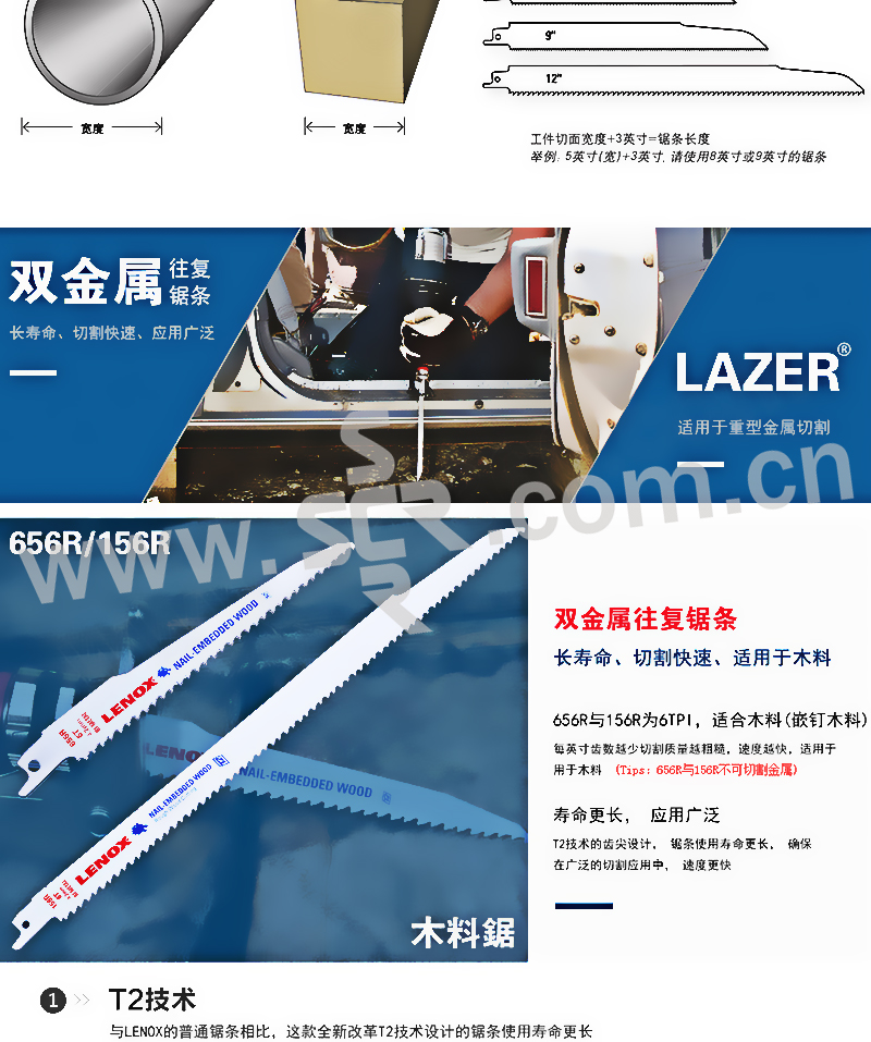 LENOX/雷诺克斯 进口双金属LAZER往复锯片 12114R厚金属切割 12" 300×25mm 1条