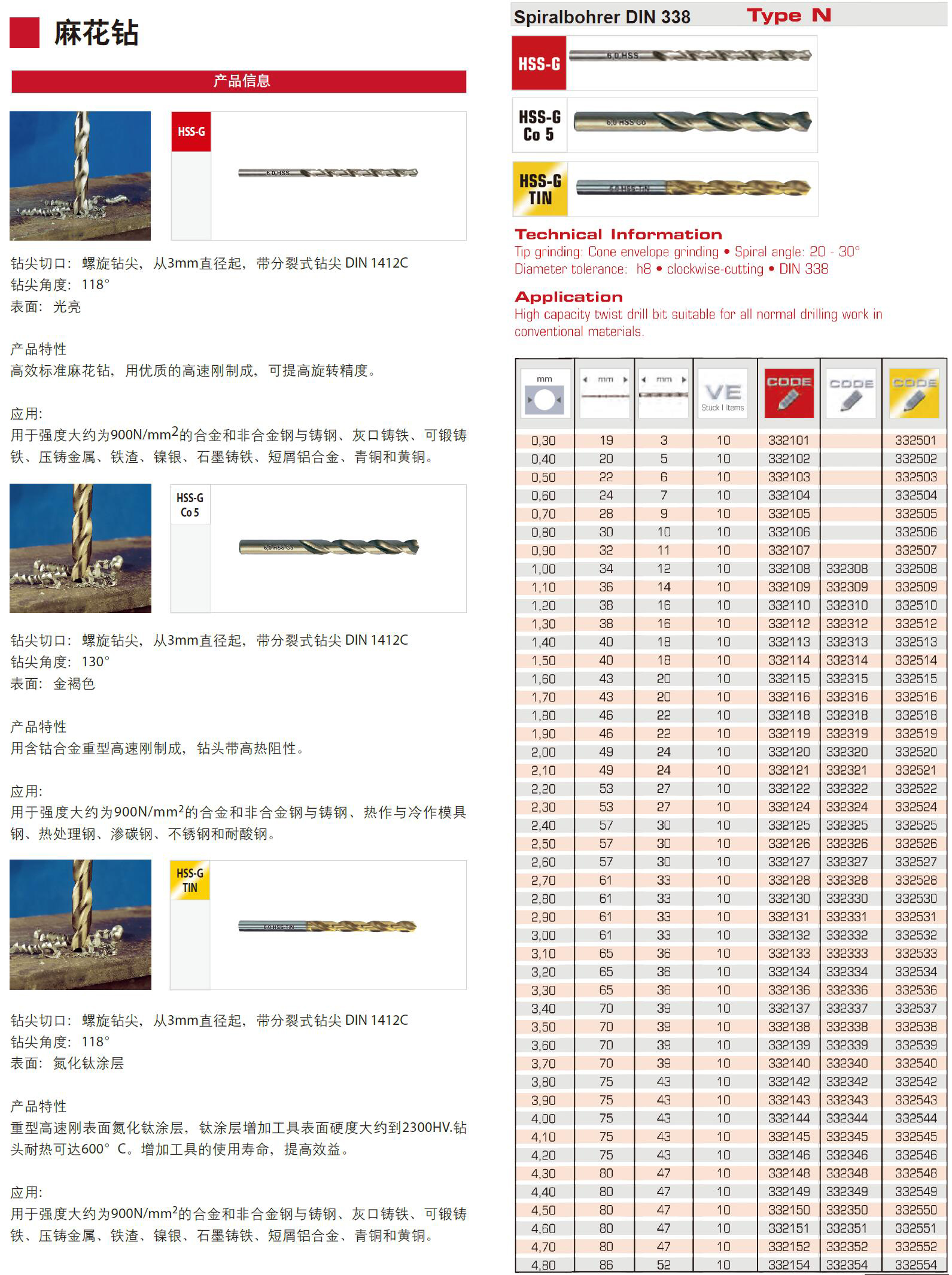 ·高效标准麻花钻 ·用优质的高速刚制成 ·可提高旋转精度