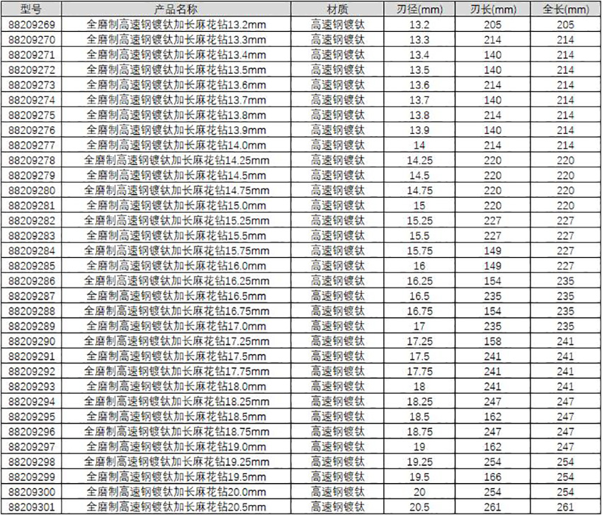 ·锥度长度较长,直柄,通用钻头使用;其中需要更深的孔。刀柄直径与钻头直径相同。