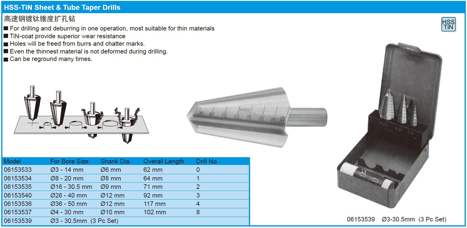 镀钛高速钢锥度扩孔钻 06153533 Dφ3-14×φ6×62 1支