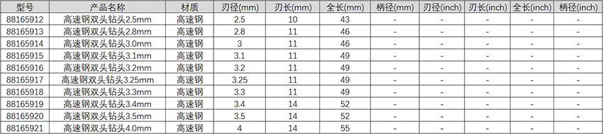 高速钢双头钻头2.5mm