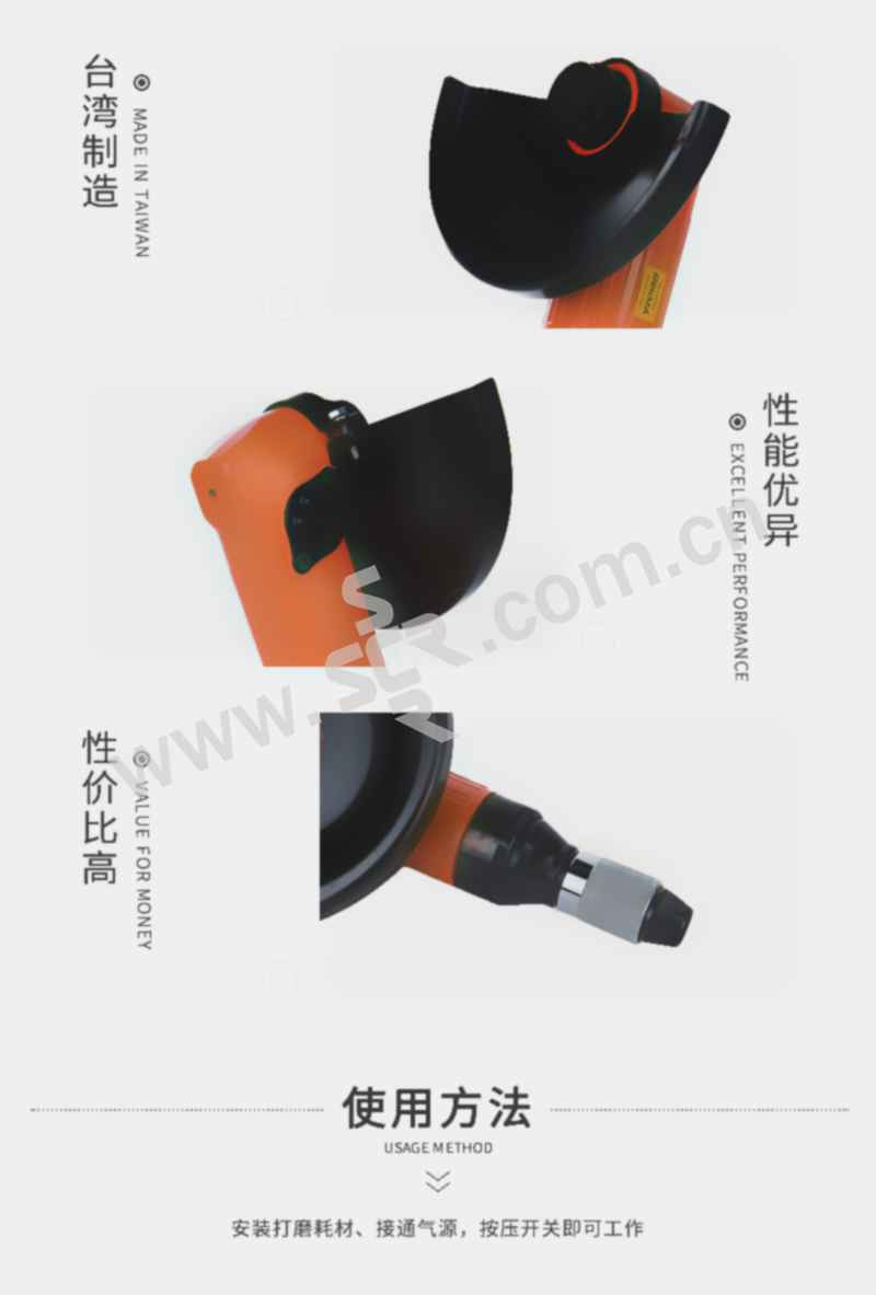 REKMA/锐克马 9"气动角磨机工业级 AT-7061R 5900RPM; 1把
