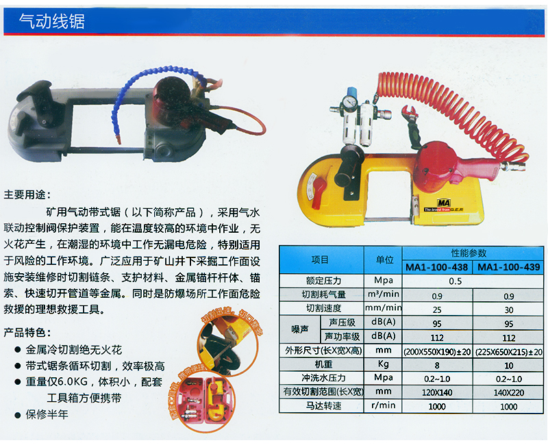 ·金属冷切割绝无火花 ·带式锯条循环切割,效率极高 ·重量仅6.0KG,体积小,配套 ·工具箱方便携带保修半年
