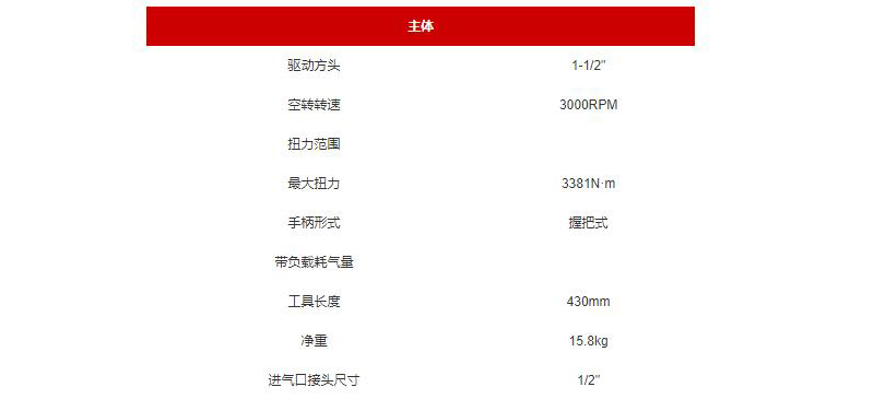 GD2428 GE70-400-3870 1-1/2" 3000RPM 3381N·m 3381N·m 握把式 430mm 15.8kg 1/2" 22683.97