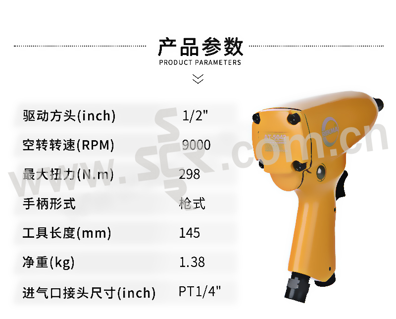 REKMA/锐克马 1/2" 气动冲击扳手(冲击销) AT-5042 1/2" M13;9,000RPM;257.6 N.m 1把