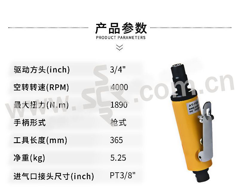 REKMA/锐克马 3/4"气动冲击扳手工业级 AT-5069-4 方 M28;4,000RPM;1,288.0 N.m 1把