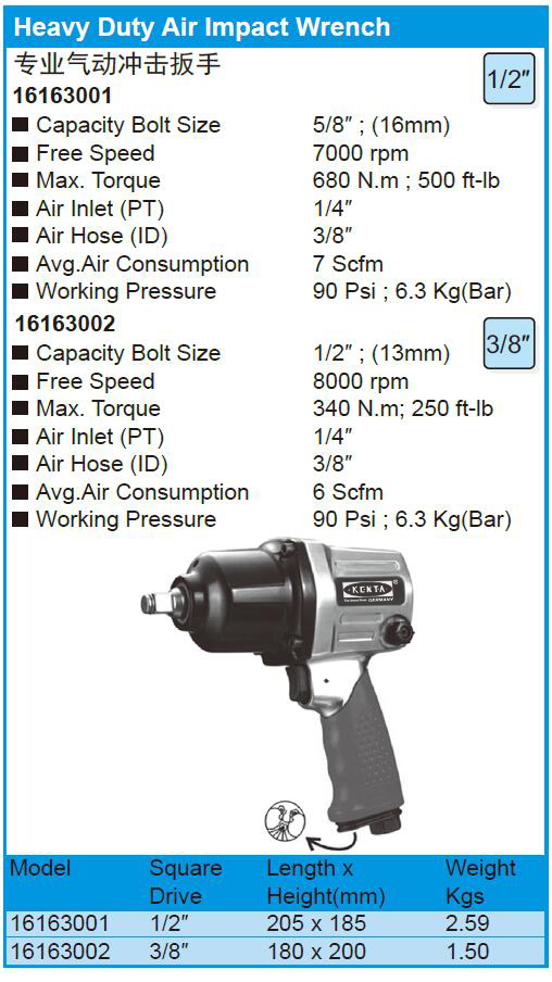 16163002 KT16-163-2 3/8″ 8000RPM 340N·m 180mm 1.50kgs 1139.20