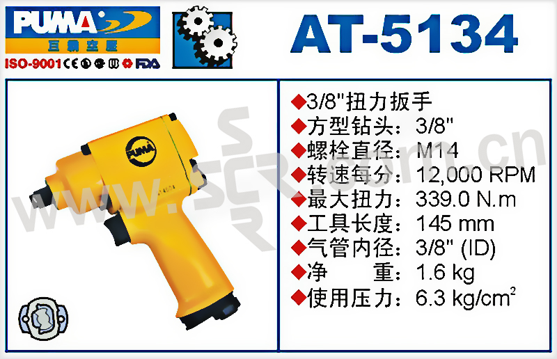 PUMA/巨霸 3/8"气动冲击扳手 AT-5134 枪形 338N·m 12000RPM 1把