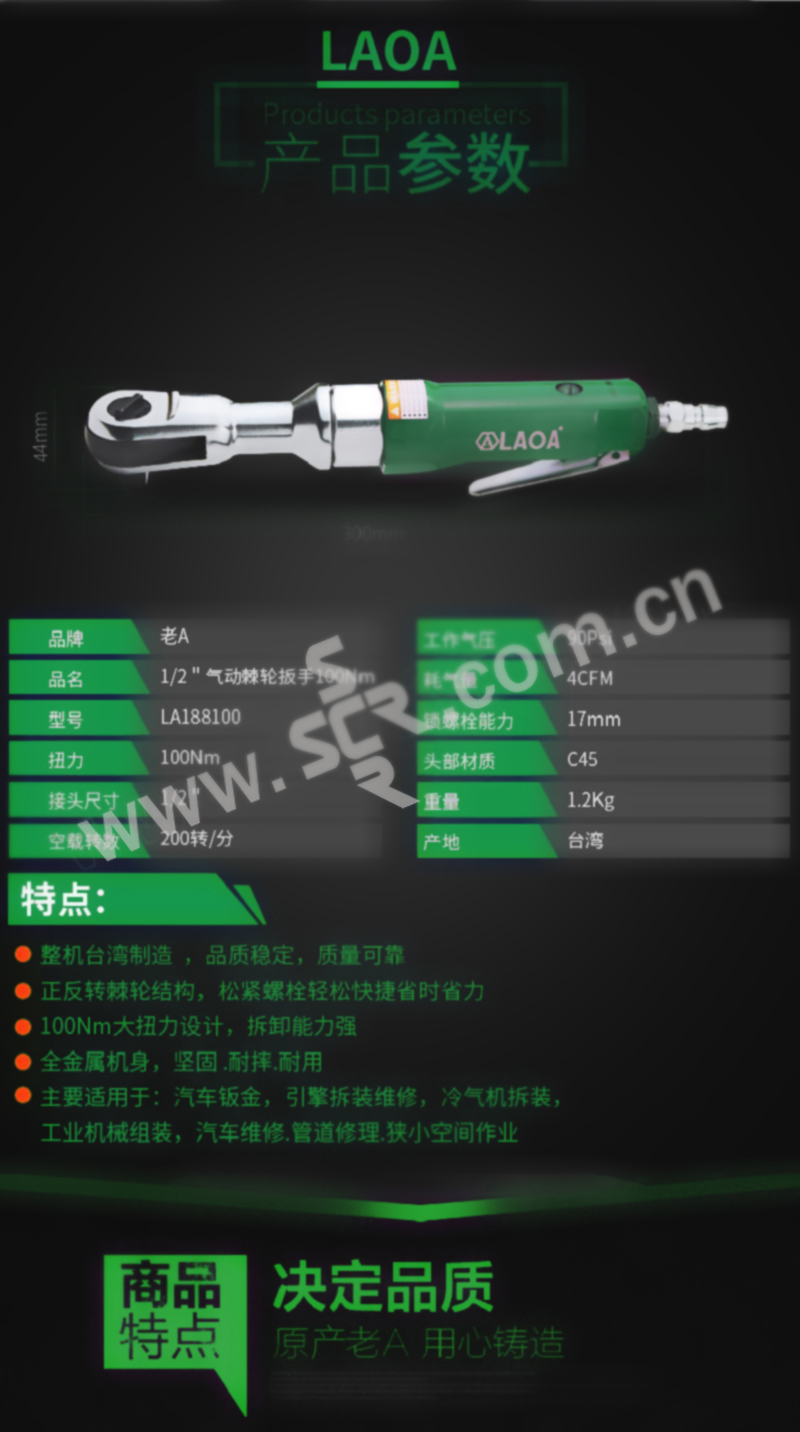 LAOA/老A 气动棘轮扳手 LA188100 1/2" 1把