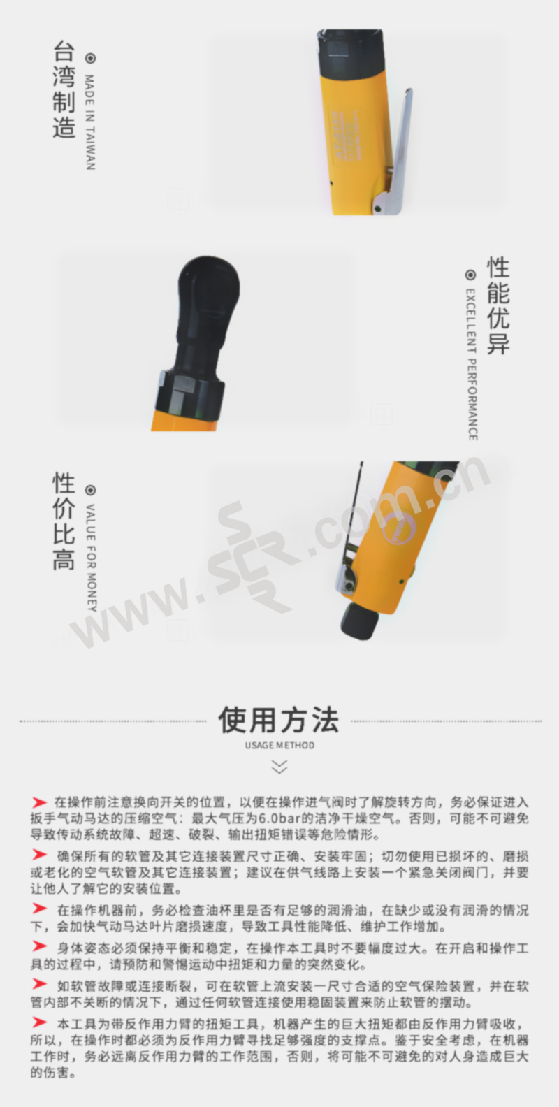 REKMA/锐克马 3/8"气动棘轮扳手 AT-5155 方 M6;250RPM;20.3 N.m 1把