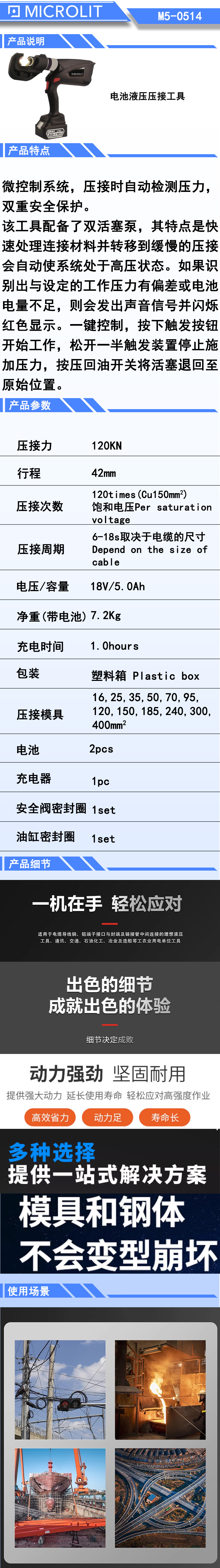K29718 M5-0516 38mm 120KN 120times(Cu150m㎡)饱和电压 7-10s取决于电缆的尺寸 18V/2.0Ah 40minutes 塑料箱 6435.00