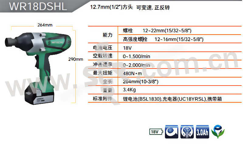 HIKOKI/日立 18V充电式锂电冲击扳手 WR18DSHL 包含两电一充 18V/3Ah 1台