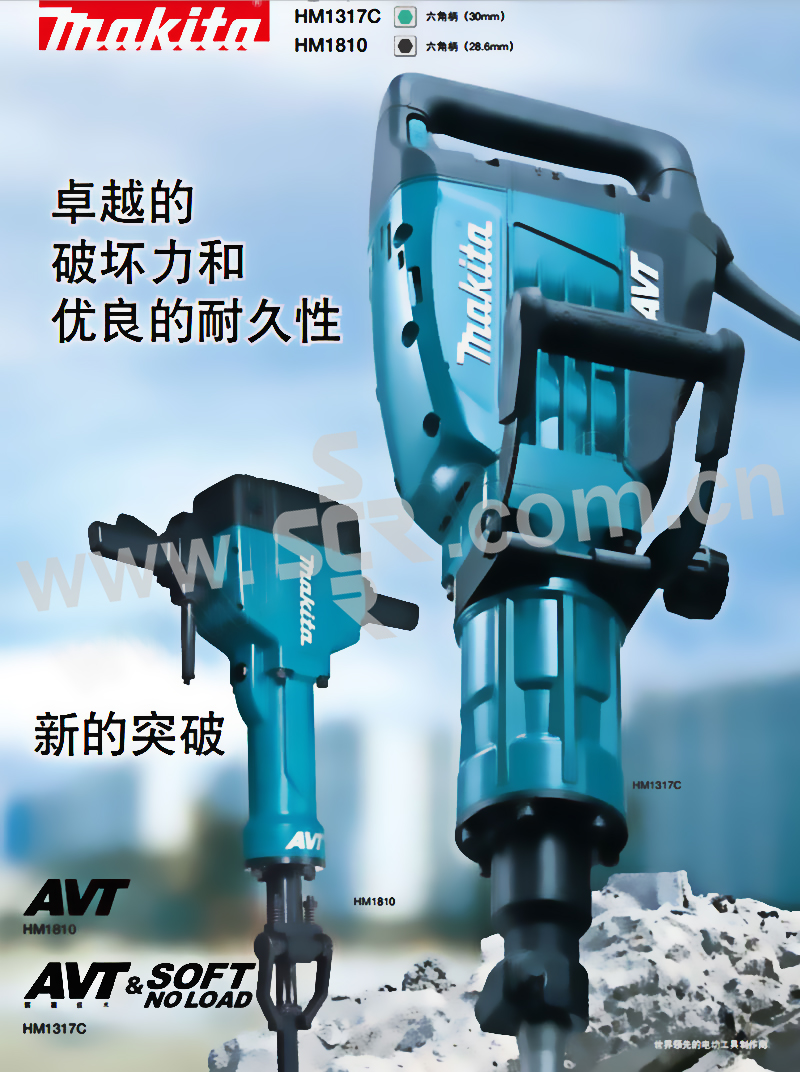 ·HM0810T 强劲马力,坚固耐用,机型小巧,三者组合!滑动式夹头,更换凿子更快 ·HM1304 30mm六角锥柄,低噪音,低振动,马力强劲,性能更卓越 ·HM1307C 坚固耐用,拆除性能优异 ·HM1317C AVT技术,超低震动保证 ·HM1801 28。6mm六角锥柄 同类产品种马力强,性能卓越 ·HM1810 最低的震动!效率高 ·HM0810TA 坚固耐用,拆除性能优异