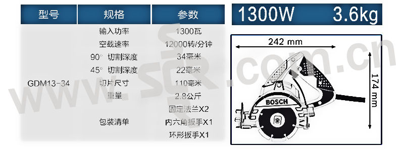 BOSCH/博世 110MM 1300W 云石机 GDM 13-34 1把