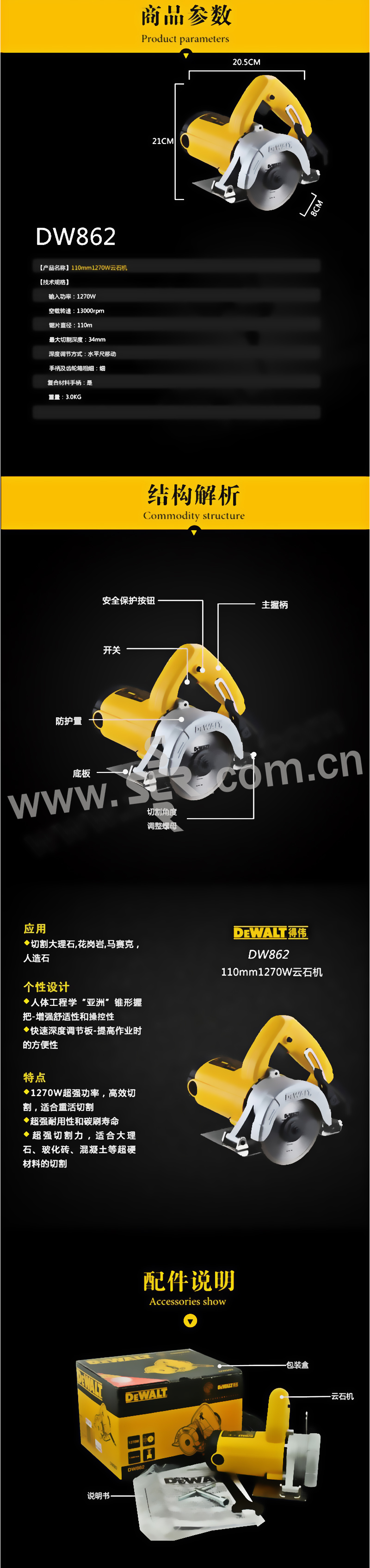 DEWALT/得伟 云石机 DW862-A9 110mm 1.25kW 1台