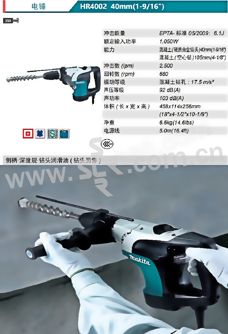 MAKITA/牧田 五坑锤钻 HR4002 40mm 1台