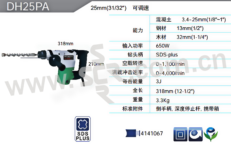 HIKOKI/日立 25mm 650W 重型锤钻 DH25PA 25mm 1台