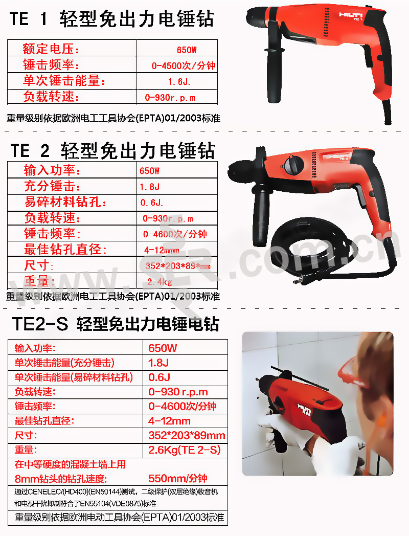 HILTI/喜利得 18mm 650W 四坑轻型免出力电锤钻 TE 1 18mm 1台