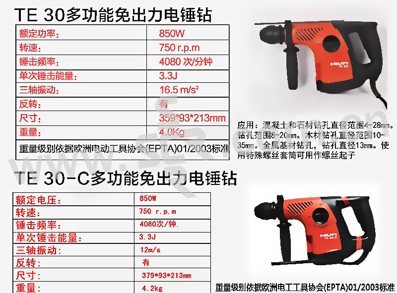 HILTI/喜利得 28mm 850W 四坑轻型免出力电锤钻 TE 30 28mm 1台