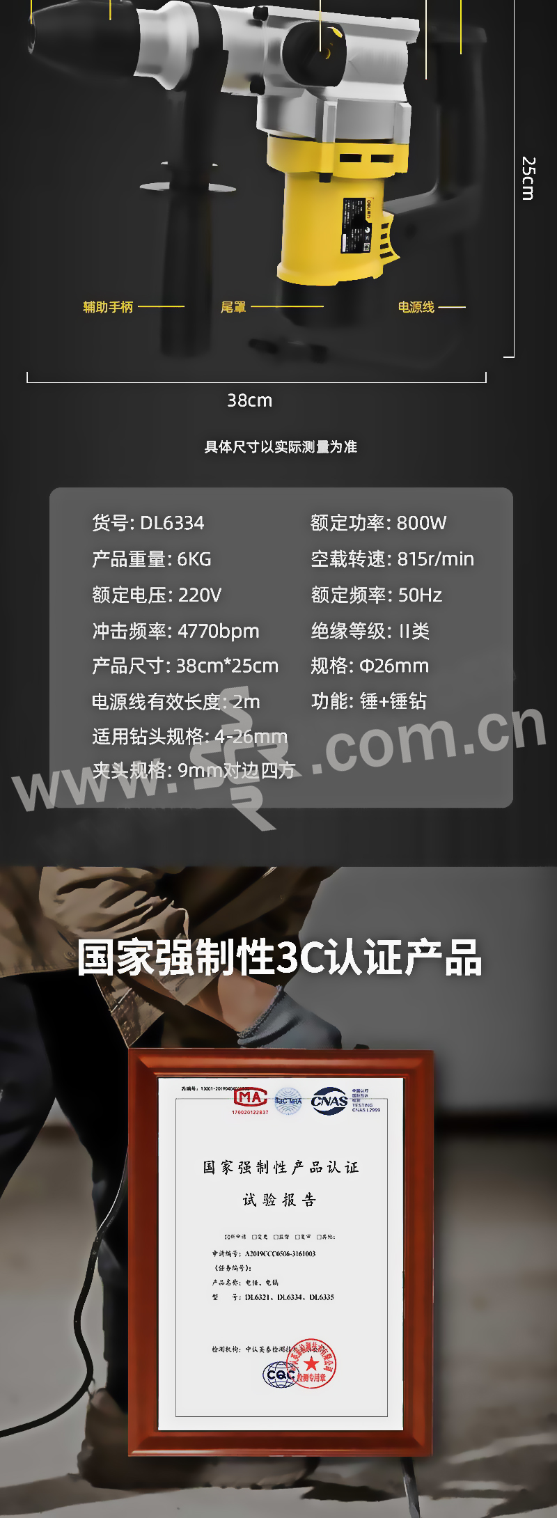 DELI/得力 电锤 DL6334 φ26mm 800W 1套
