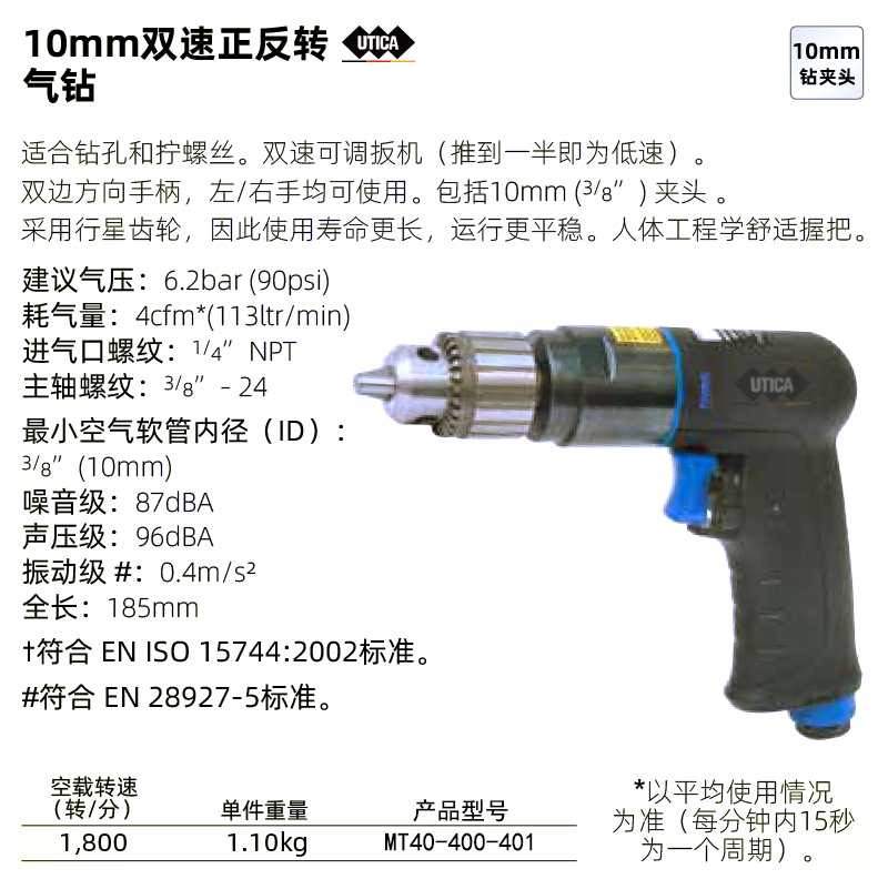 10mm双速正反转气钻