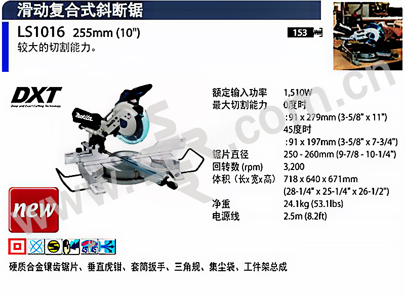 MAKITA/牧田 255mm 1510W 斜断锯 LS1016 1台