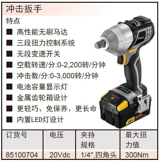 ·高性能无刷马达 ·三段扭力控制系统 ·无段变速开关 ·空载转速/分:0-2,200转/分钟 ·冲击数/分:0-3,000转/分钟 ·电池容量显示灯 ·金属齿轮箱设计 ·更轻巧、免保养、更长命 ·内置LED灯设计