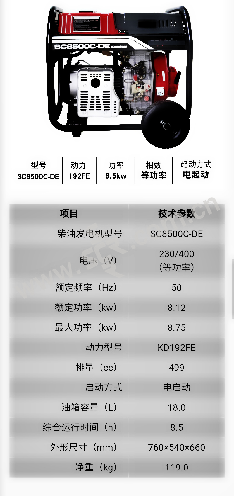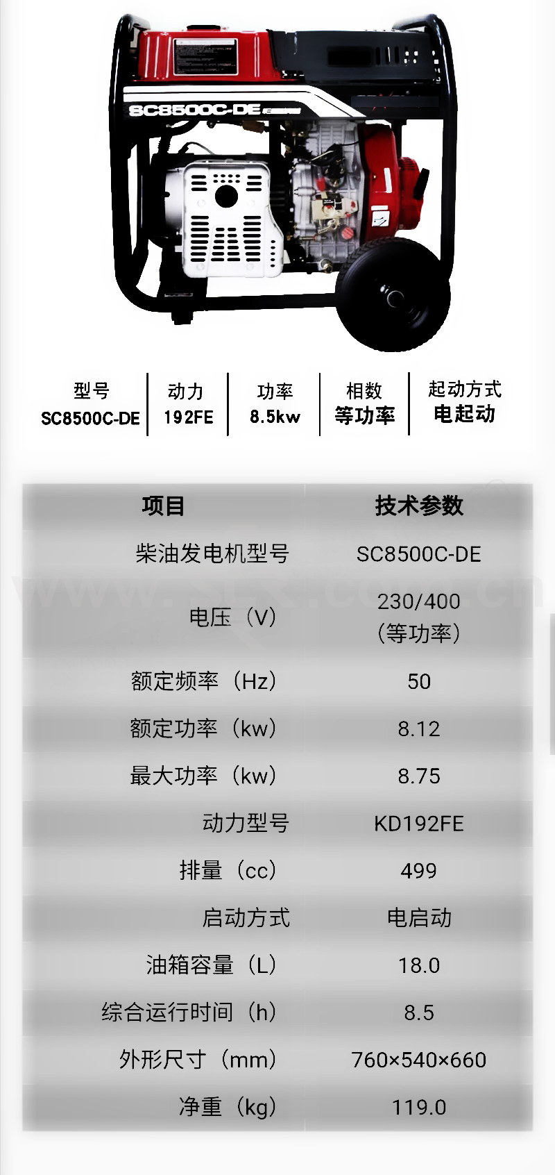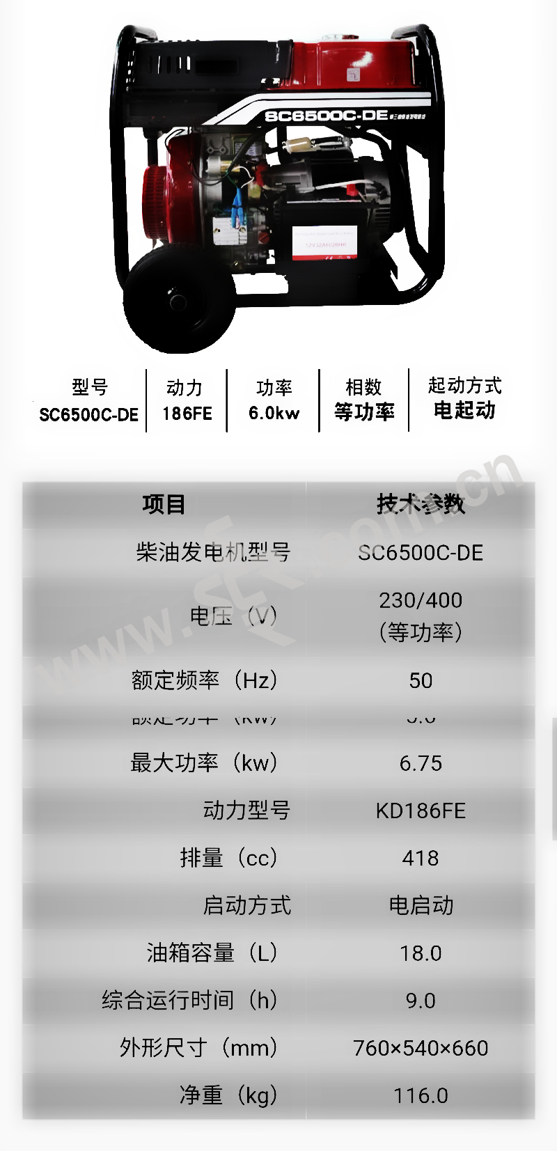 TPS/拓普盛 柴油发电机 DP-SC-SC8500CE 760×540×660mm 1台