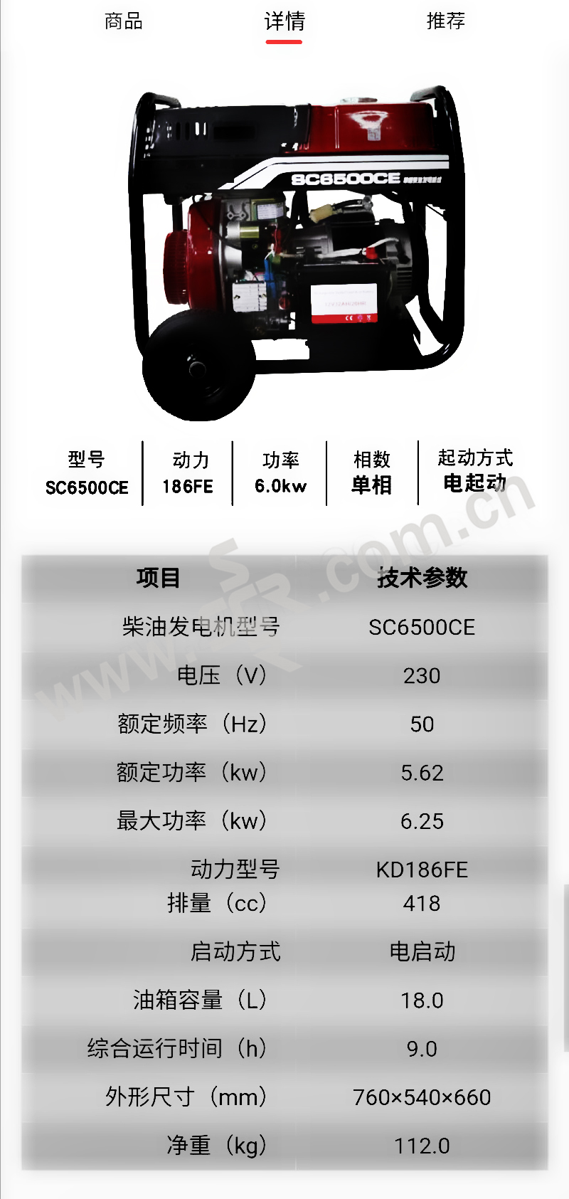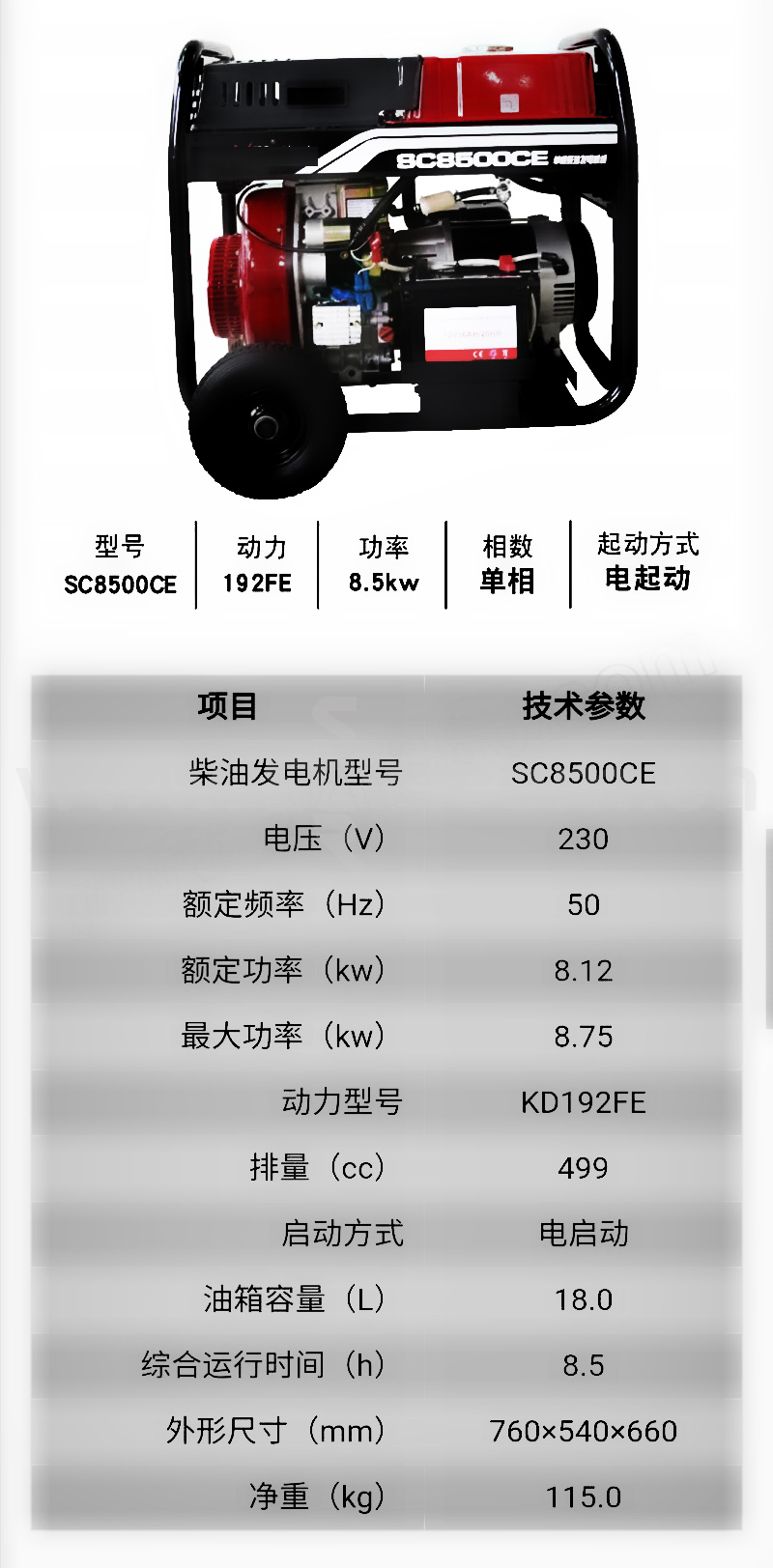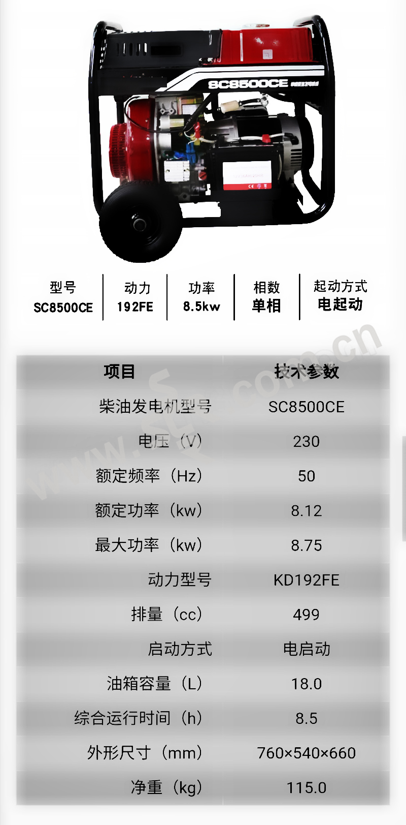 TPS/拓普盛 柴油发电机 DP-SC-SC8500CE 760×540×660mm 1台