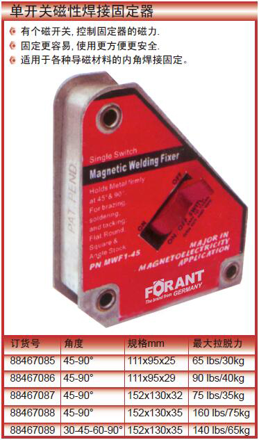 ·有个磁开关,控制固定器的磁力.固定更容易,使用更方便更安全.适用于各种导磁材料的内角焊接固定