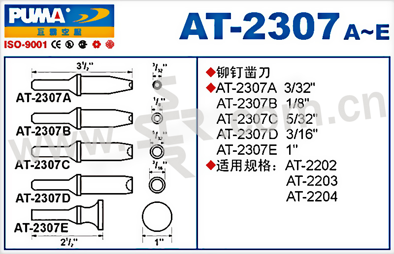 PUMA/巨霸 铆钉锤用凿刀 AT-2307A 3/32" 1把