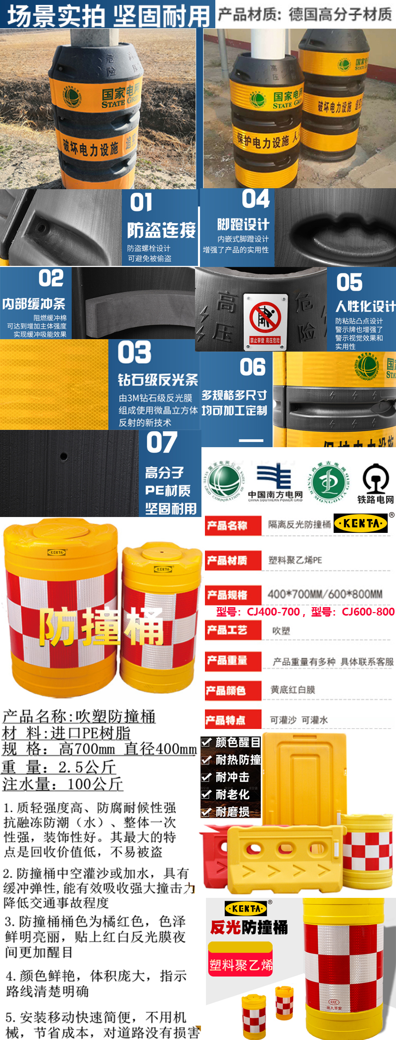 ·本产品具国电核电等路况有防撞抗压,安全防护高强反光,使用长久等特点外形美观,具有夜间反光,警示作用; ·具有高强度、抗冲击、耐腐蚀、抗老化,耐低温,耐高温,防撞、阻燃、绝缘、防淋雨等特性; 适用场合: ·适用于电线杆防护领域