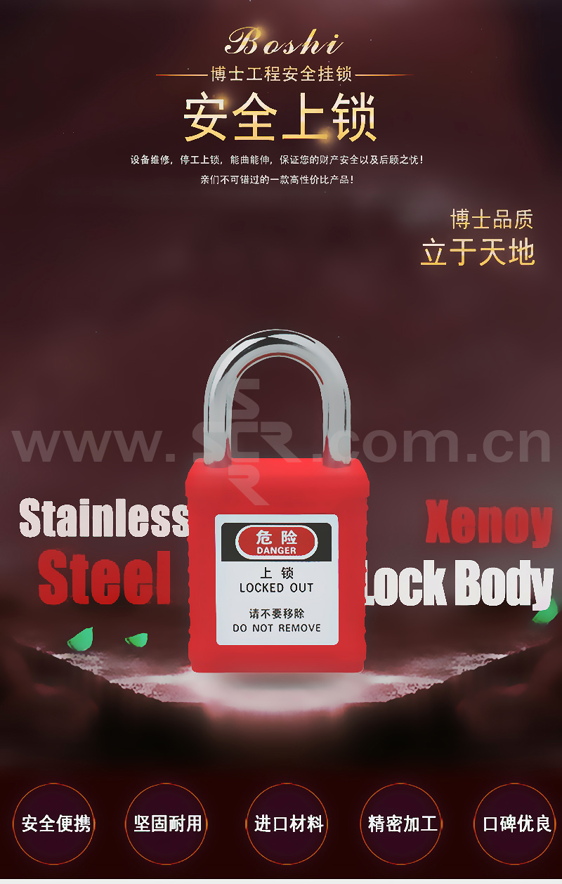 ·锁体由工程塑料尼龙PA制成,防紫外线,耐腐蚀,一体式设计,耐用,抗温差(-57℃~+177℃),抗冲击