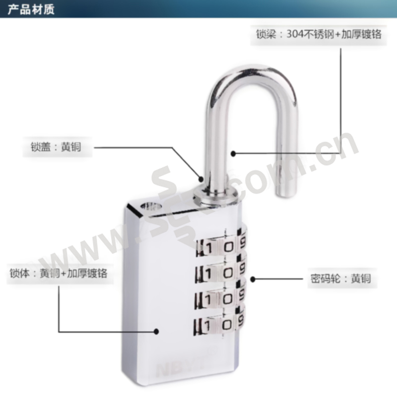 NBYT 304不锈钢金属锁 T3513-SS 银色 1把