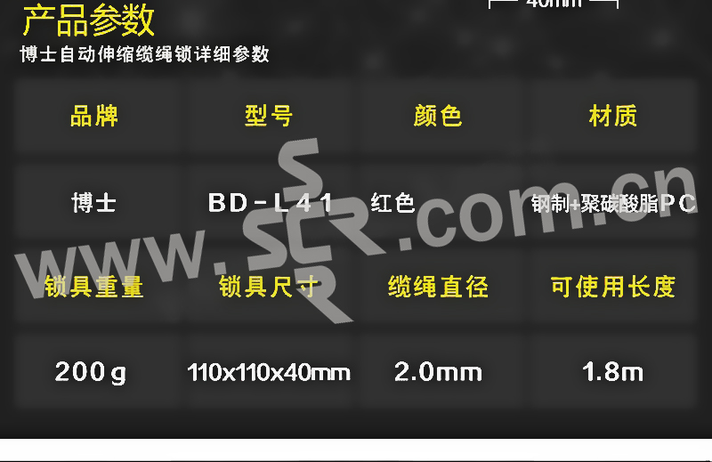 BOZZYS/博士 自动伸缩缆绳锁 BD-L41 1个