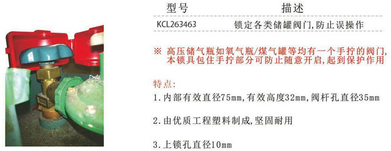 ·高压储气瓶如氧气瓶/煤气罐等均有一个手拧的阀门,本锁具包住手拧部分可防止随意开启,起到保护作用