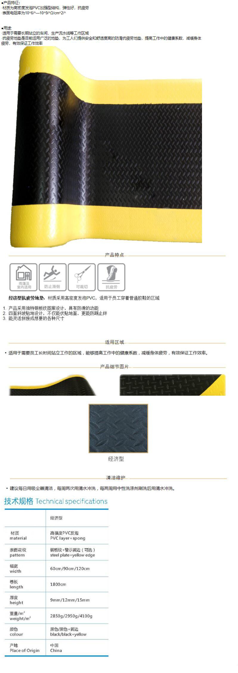 ·材质为高密度发泡PVC加强型结构,弹性好,抗疲劳 ·表面电阻率为10^6/^—10^9/^Ω/cm^2/^