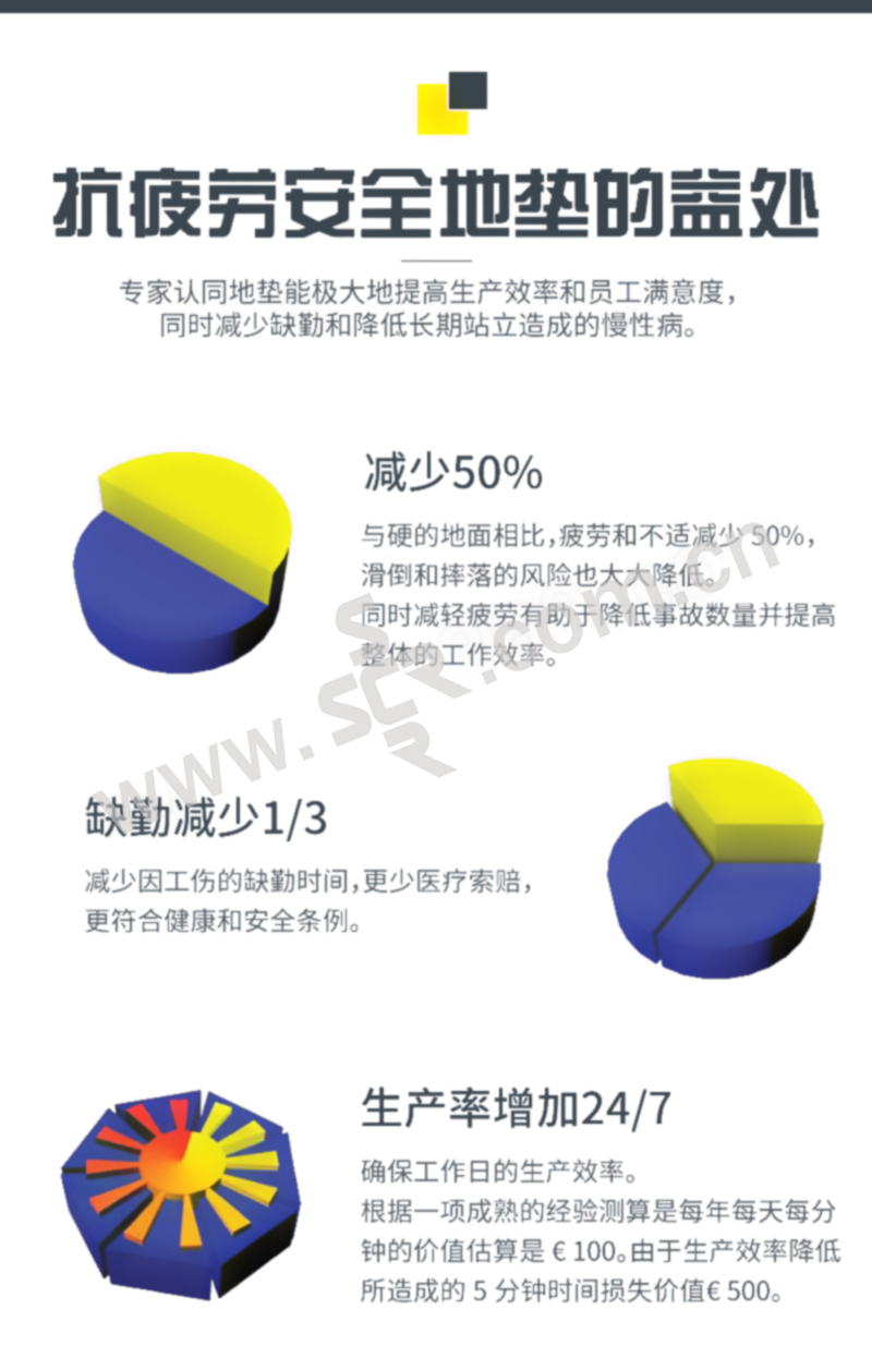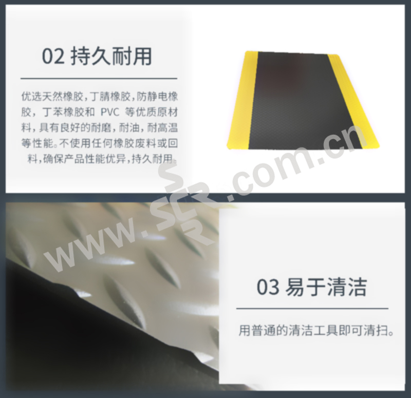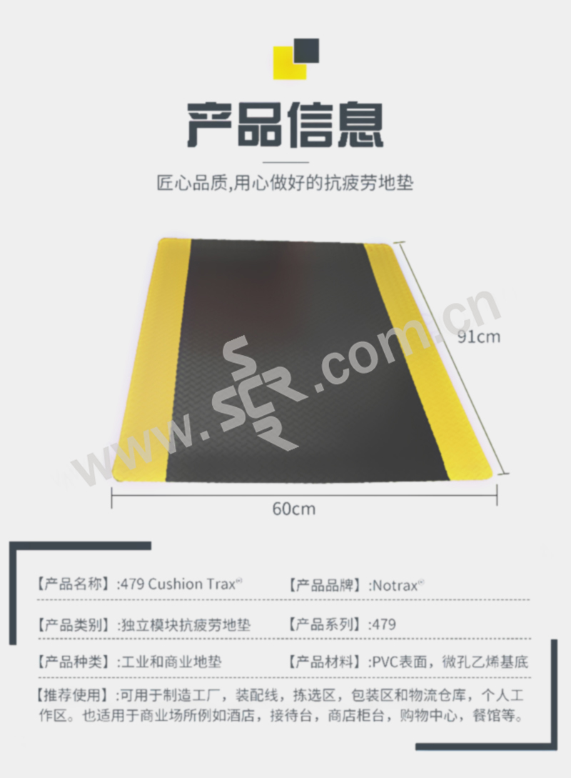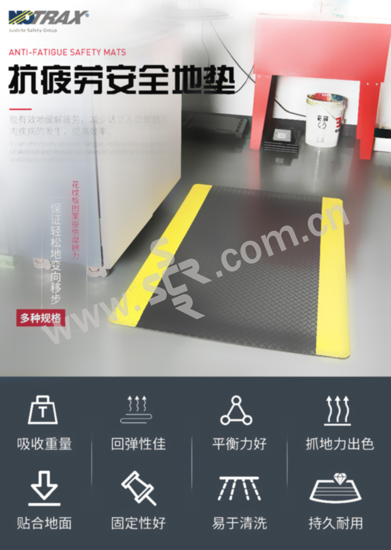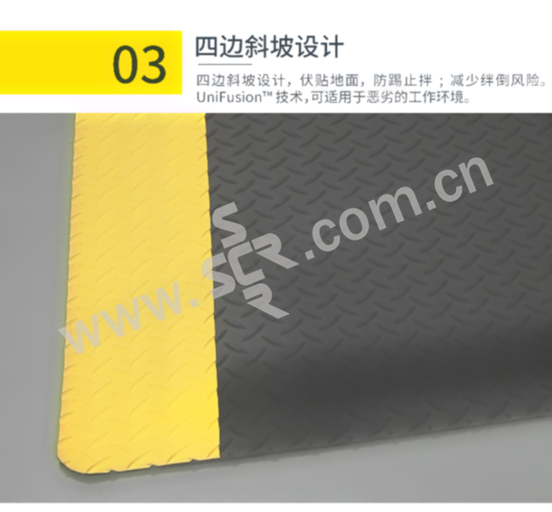 ·防滑性能达到DIN51130 和BG- 规则BGR181 中的R10 级别,经美国国家地板安全研究所测试并认证 ·使用RedStop™ 防滑技术来阻止地垫滑动。·提供符合OSHA 标准1910-144 的黄色边缘。·所有四边使用坡度边缘来最小化绊倒风险。·使用UniFusion™ 技术来保证其在最严格工作环境中的耐用性。· 按照EN 13501-1 测试的耐火分级为Bfl-S2· 摩擦系数经NSFI 认证。· 不含DOP(邻苯二甲酸二