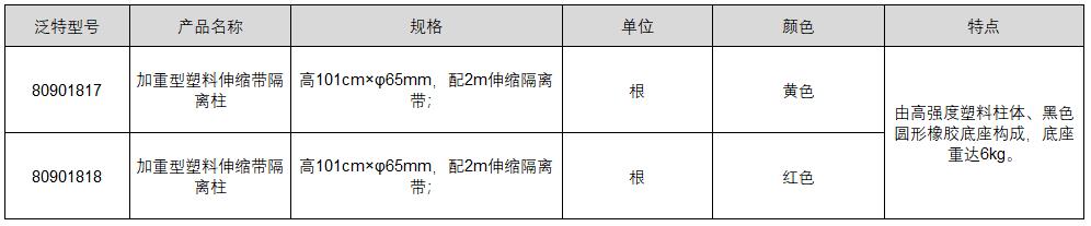 高101cm×φ65mm,配2m伸缩隔离带;