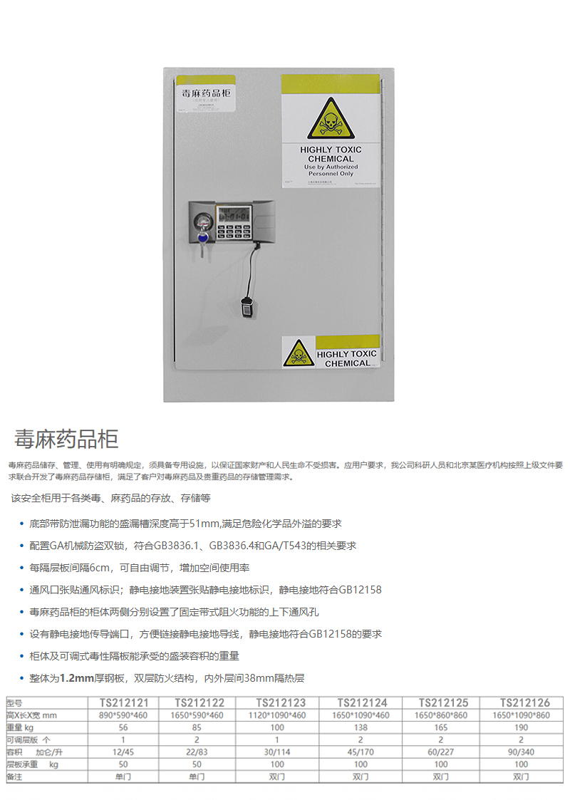 ·采用GA认证的电子密码锁,做到对危险品的有效管控、防盗、放误碰,安全性高;