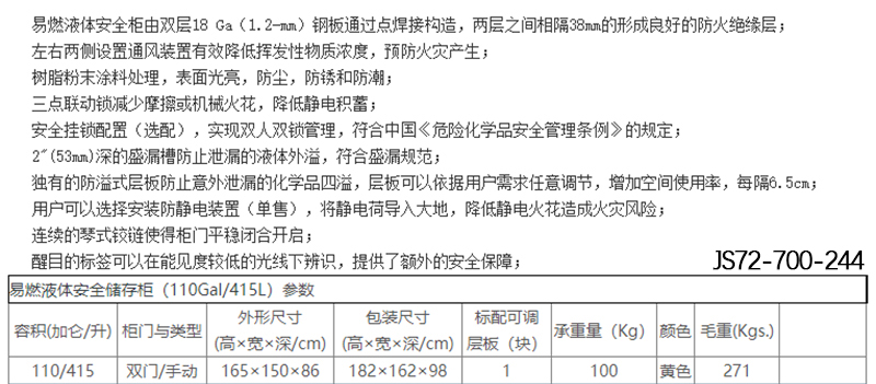 规格:  110加仑/415L 制造商型号:  JS72-700-244