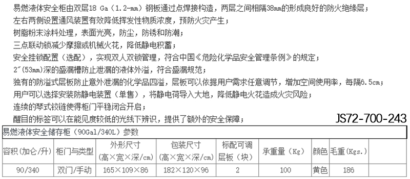 J13459 JS72-700-243 90加仑/340L 165x109x86cm 双门/手动 1865kgs 8471.52
