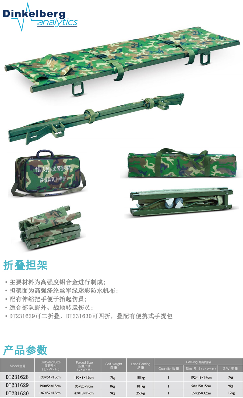 ·主要材料为高强度铝合金进行制成; ·担架面为高强涤