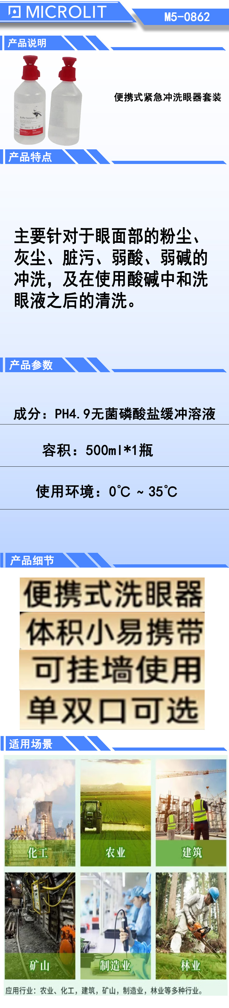 * 所含PH值4.9%的无菌磷酸盐缓冲液能快速有效的中和强酸碱溶液,不会对眼睛造成伤害。