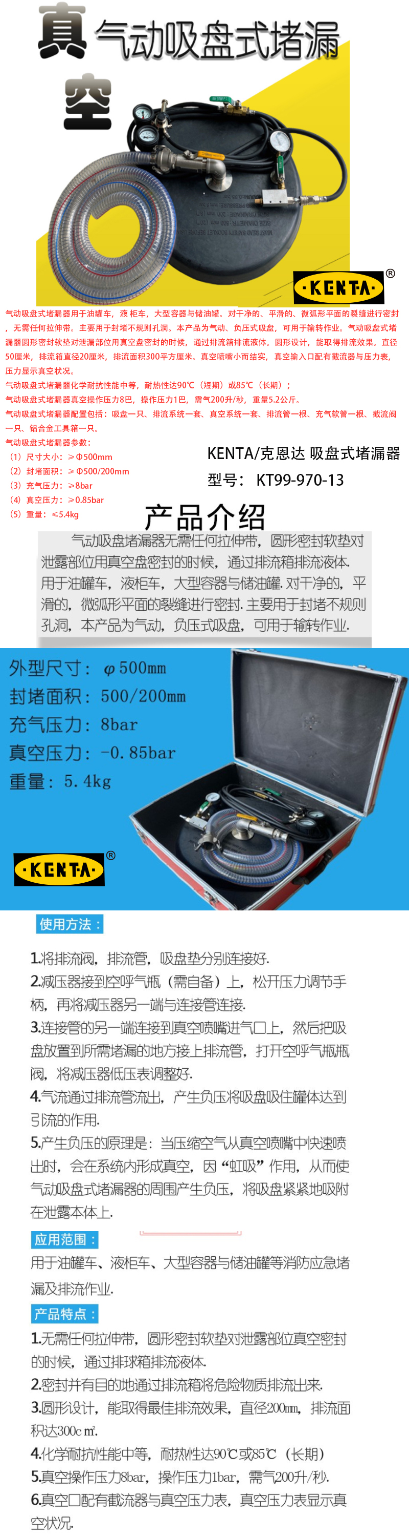吸盘式堵漏器 KT99-970-13 充气密封面积50×30cm 1套