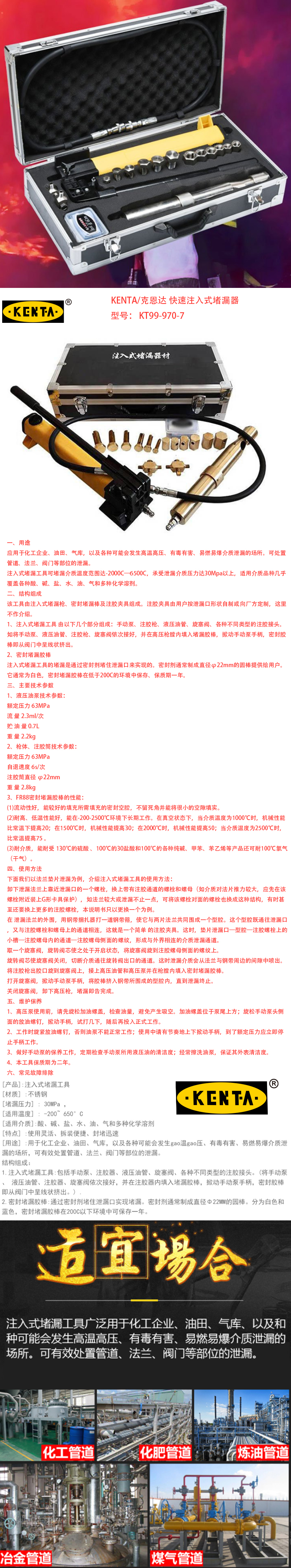 快速注入式堵漏器 KT99-970-7 可堵介质温度范围-200~600℃ 1套