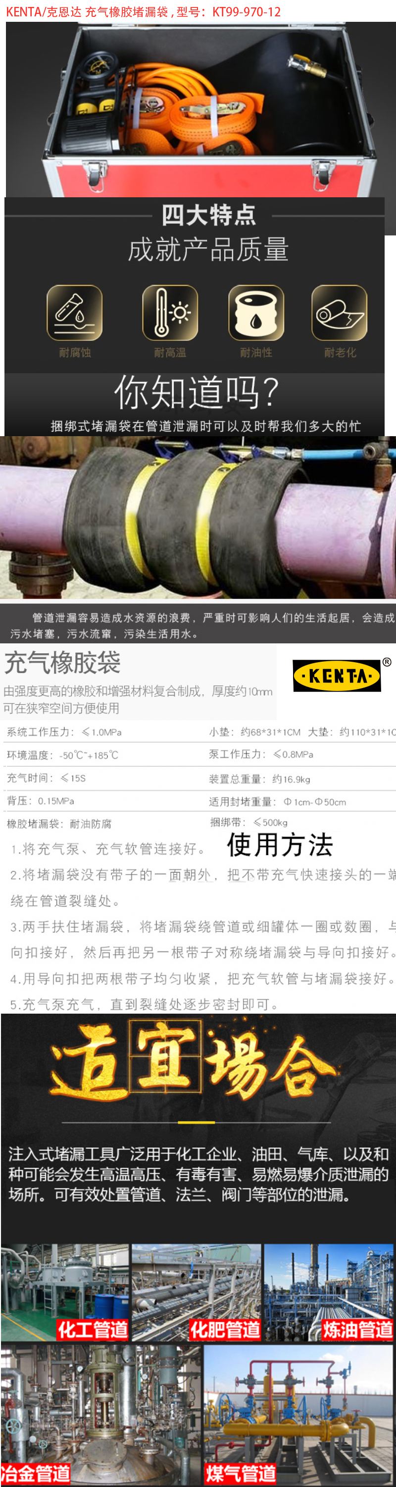 充气橡胶堵漏袋 KT99-970-12 封闭φ300~500mm 1套