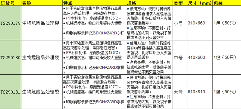 生物危险品处理袋 附COA