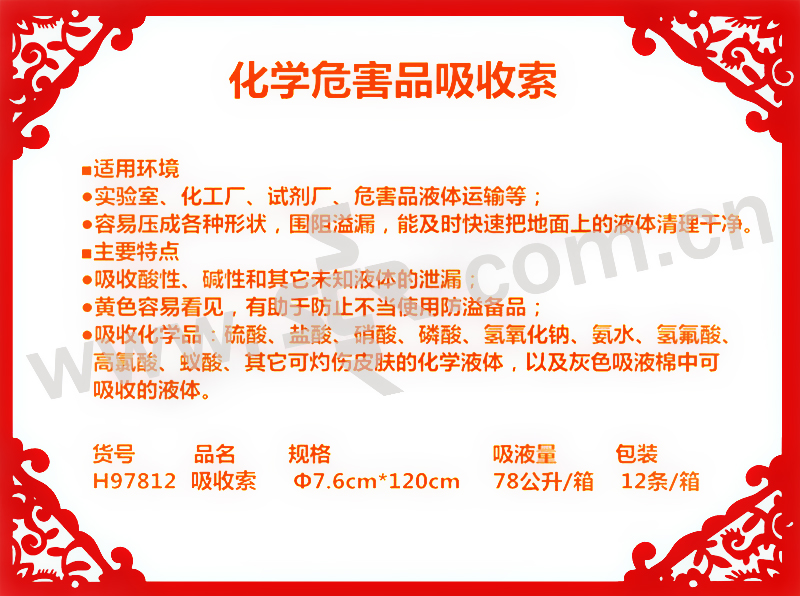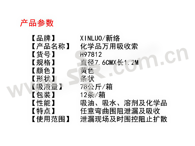 XINLUO/新络 化学品吸收索 H97812 黄色 12条 1箱